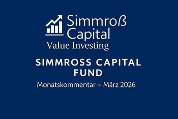 Es bestehen Interessenskonflikte, da die genannten börsennotierten Wertpapiere Bestandteile des Fonds sind oder waren. Den monatlich wechselnden Marktkommentar finden Sie auch immer in dem aktuellen Factsheet im Downloadbereich. Diese Mitteilung dient ausschließlich zur Information. Sie stellt kein Angebot dar, Fondsanteile zu erwerben. Lesen Sie die Verkaufsunterlagen des Fonds, bevor Sie eine Anlageentscheidung treffen: Downloads / Fondsdaten - Simmroß Capital GmbH (simmross.de)